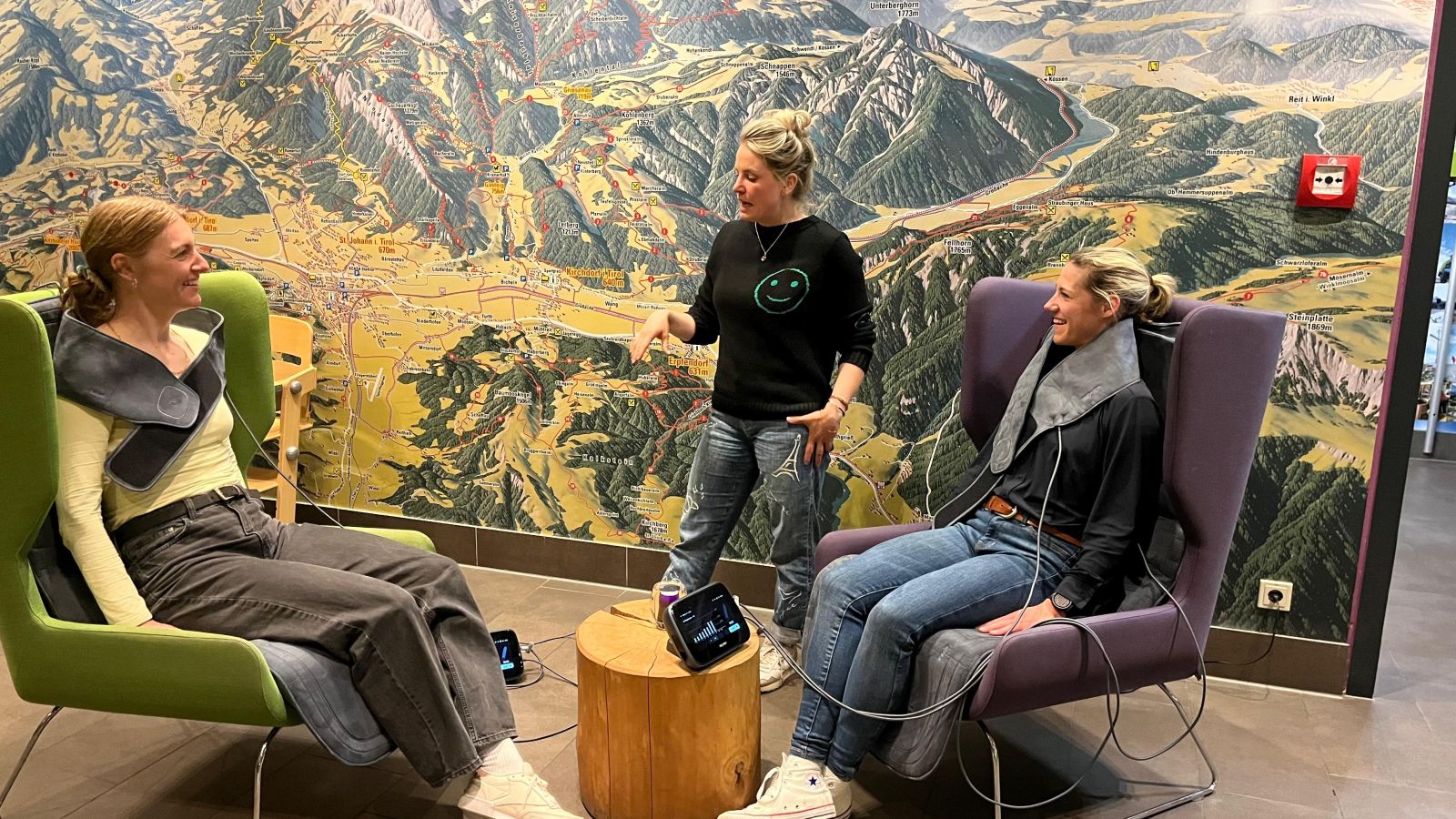 Während des Camps kannst Du die Produkte von Bemer testen und Infos von den Kolleginnen vor Ort erhalten. Es soll die Durchblutung fördern und die Erholung beschleunigen.